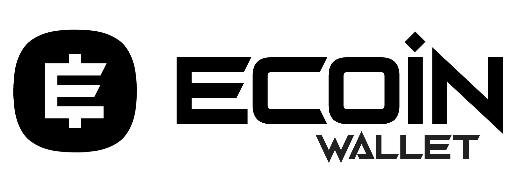 ECOIN Wallet’s logo combines visual and typographic elements inspired by modern and technological concepts. The word "ECOIN" is built with a custom modular typeface, while the logo on the left incorporates a monetary symbol based on the iconic design of Bitcoin, connecting the brand to the reliability and innovation associated with cryptocurrency.