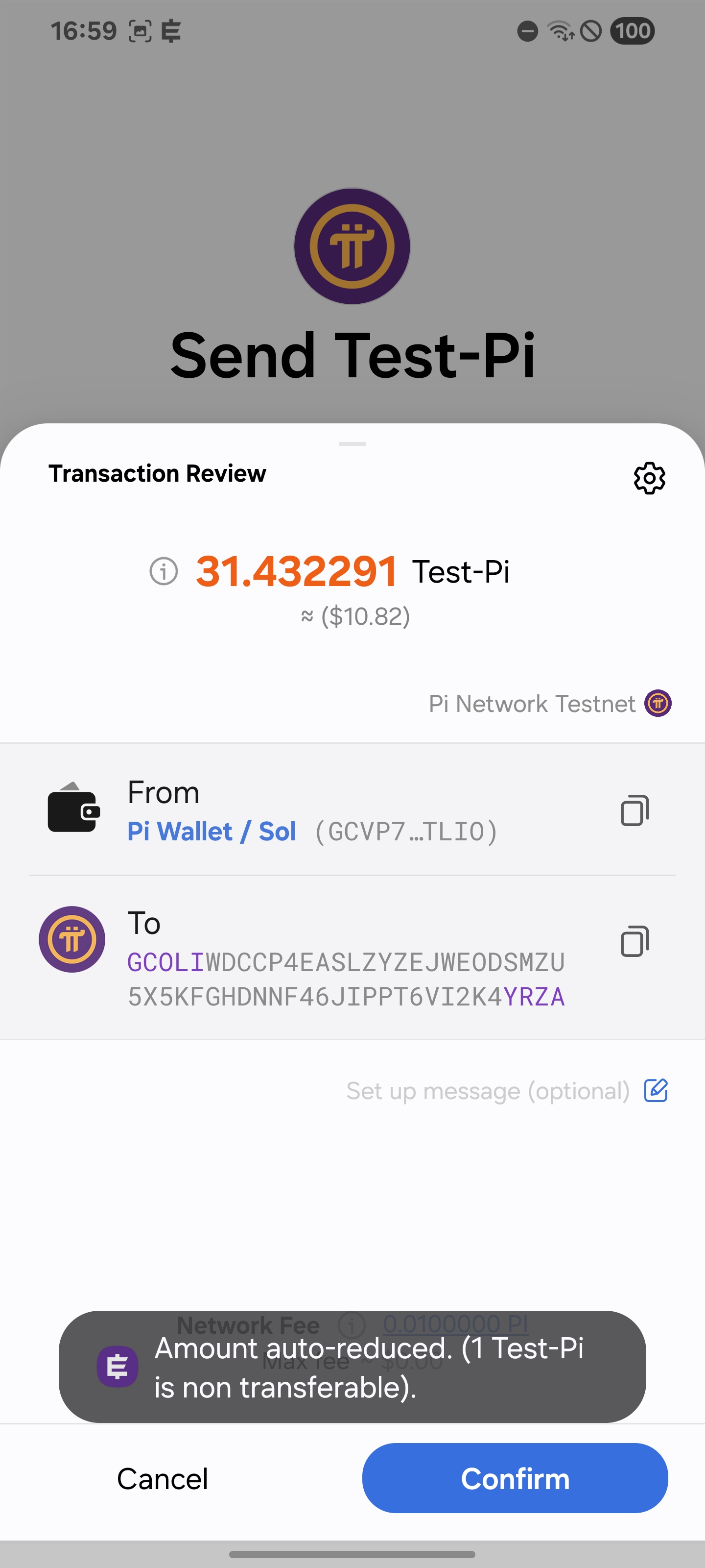 - Automatic Adjustments: When you select "Max," the PI amount is dynamically adjusted to account for network fees, ensuring you send the highest possible amount.