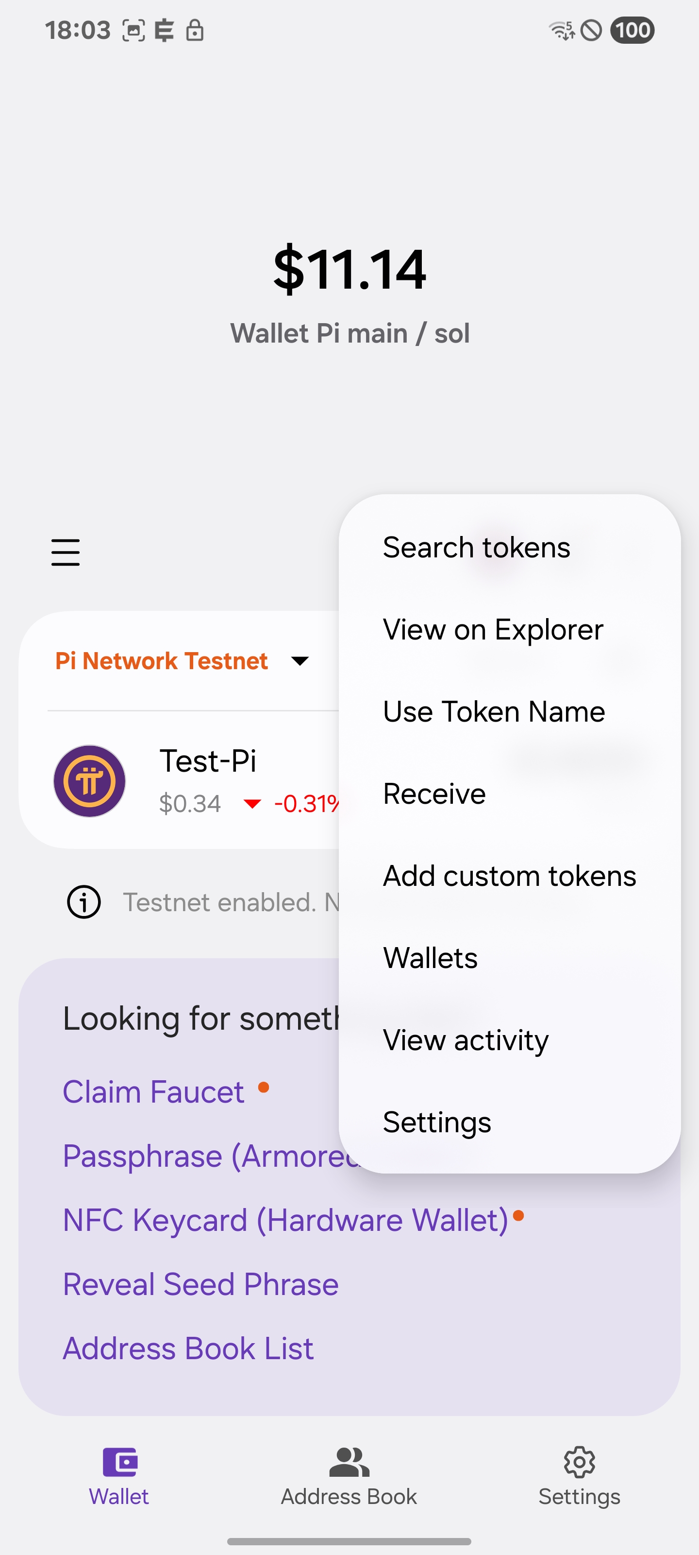 - Quick Access: Manage security settings, reveal seed phrase, or use your address book directly from the wallet screen.