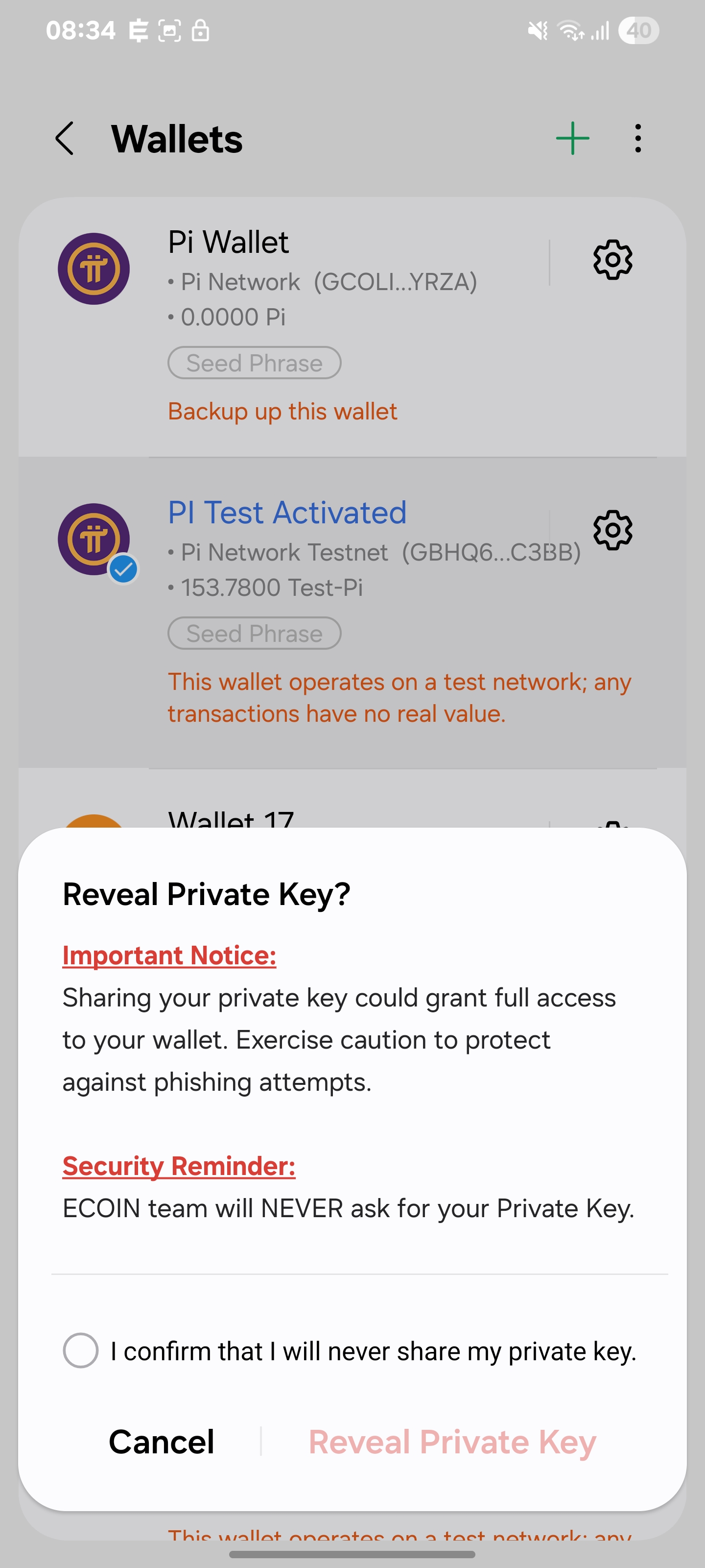 With the Export Private Keys feature, Ecoin Wallet offers flexibility in managing your Pi Network and multi-chain keys, ensuring ease of use while maintaining top-tier security, even when other wallets may not provide this capability.