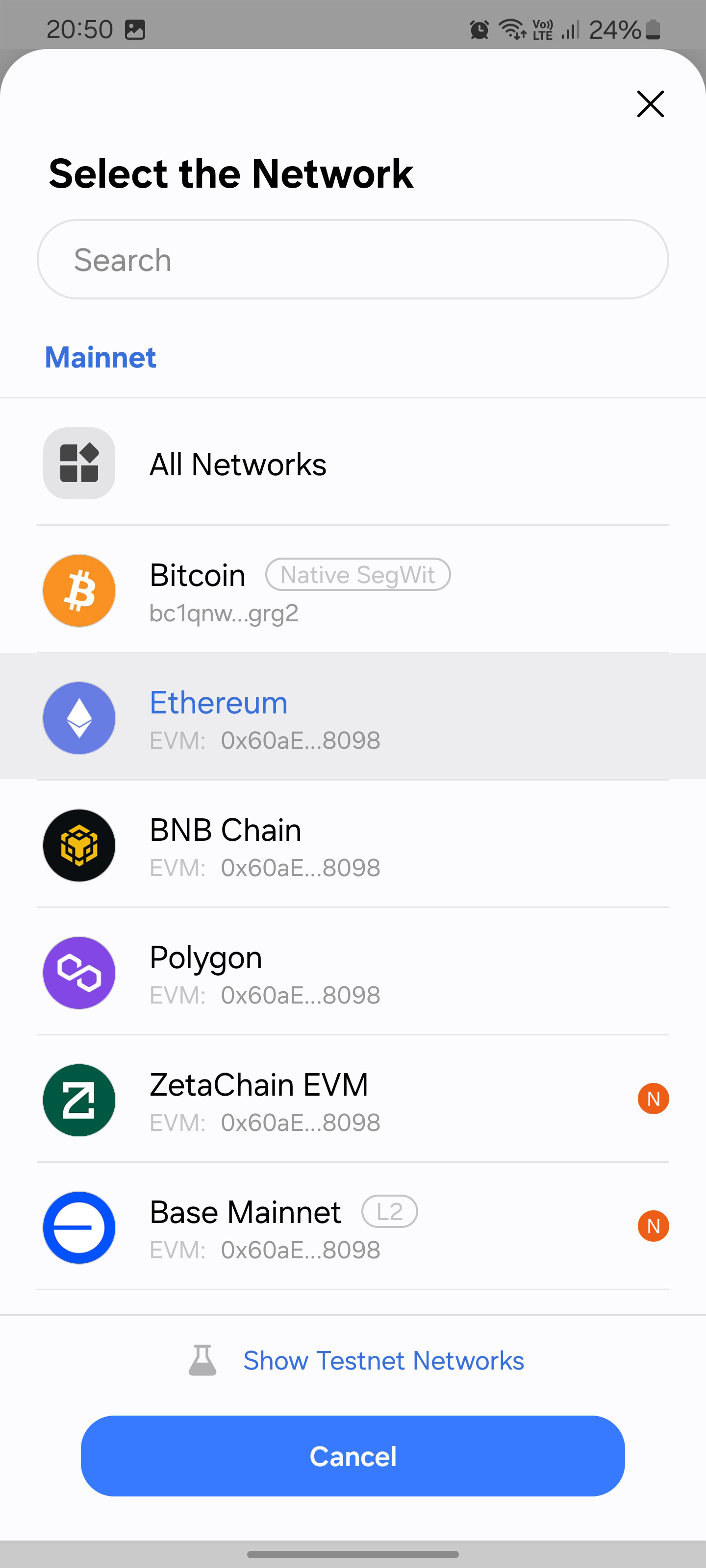 - Easy Switching: Quickly toggle between Testnet and Mainnet with just a few taps, making it simple to switch based on your needs.