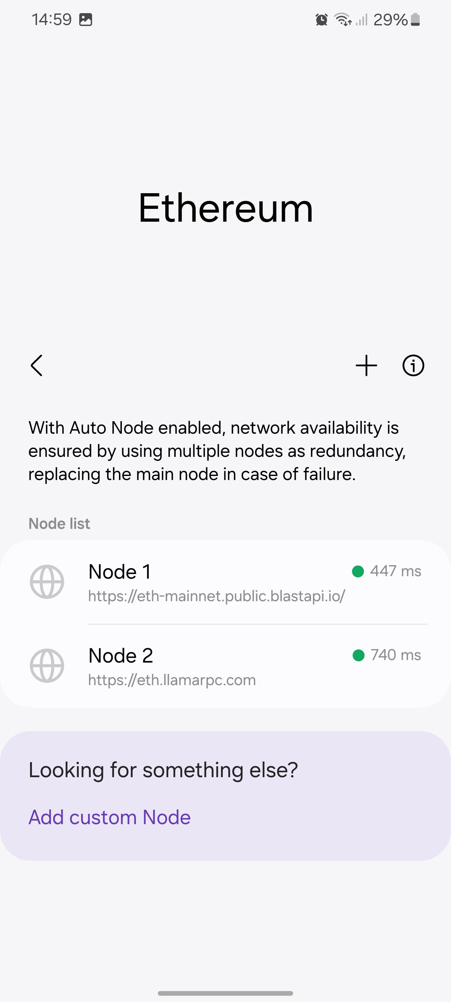 - Custom Node Support: Advanced users can add their own RPC endpoints, allowing complete control over their Ethereum network connection.