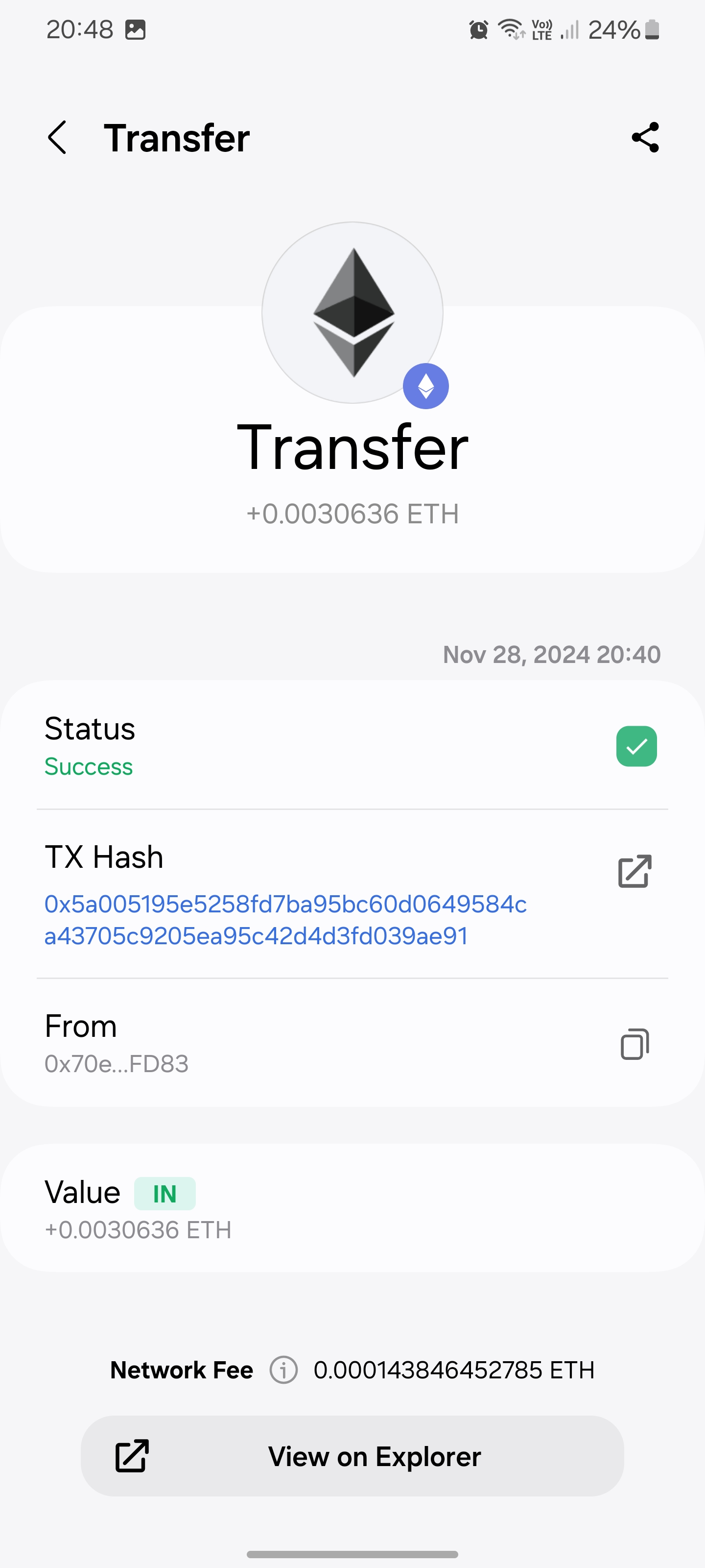 With the View in Block Explorer feature, Ecoin Wallet offers users the ability to explore their Ethereum transactions in greater detail, enhancing transparency and control over their funds.