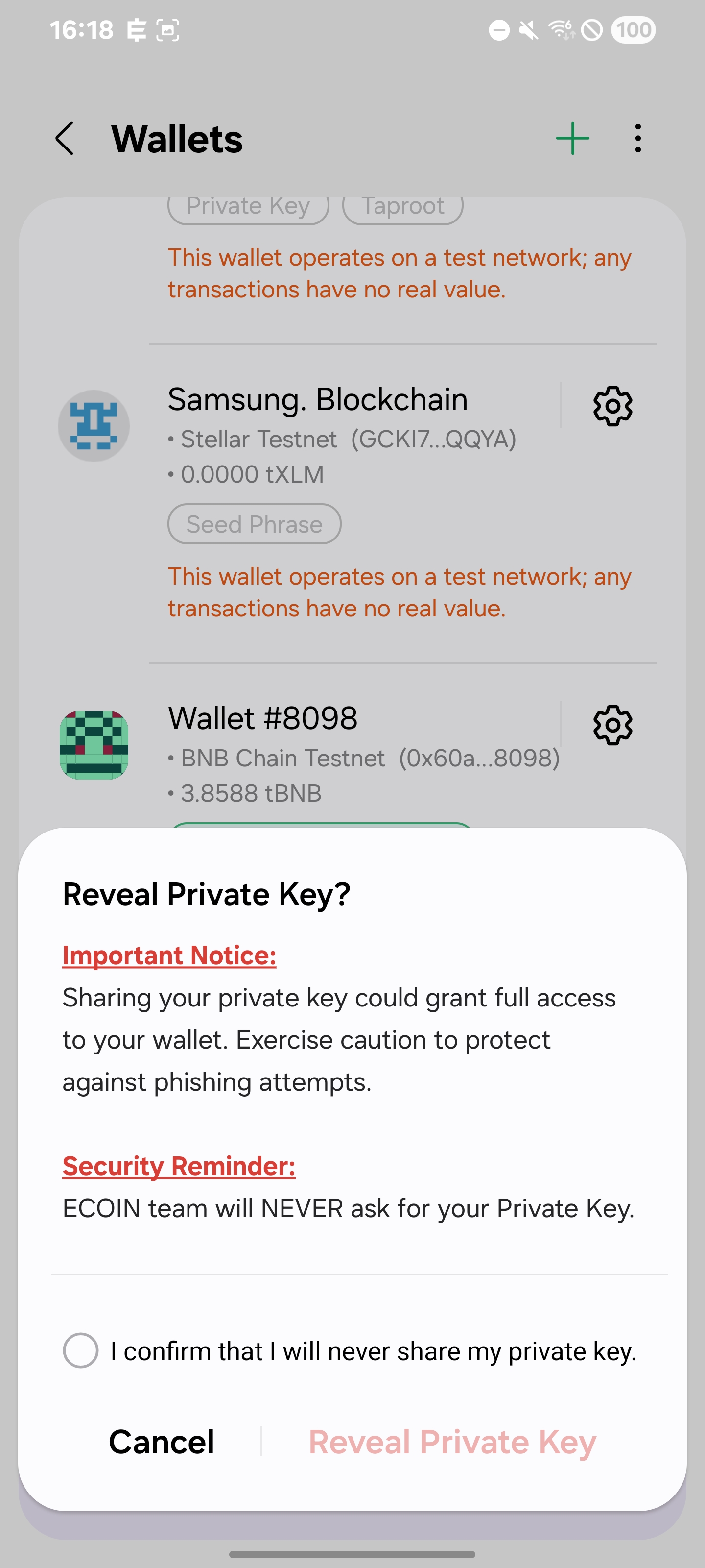 With the Export Private Keys feature, Ecoin Wallet offers flexibility in managing your Stellar and multi-chain keys, ensuring ease of use while maintaining top-tier security, even when other wallets may not provide this capability.